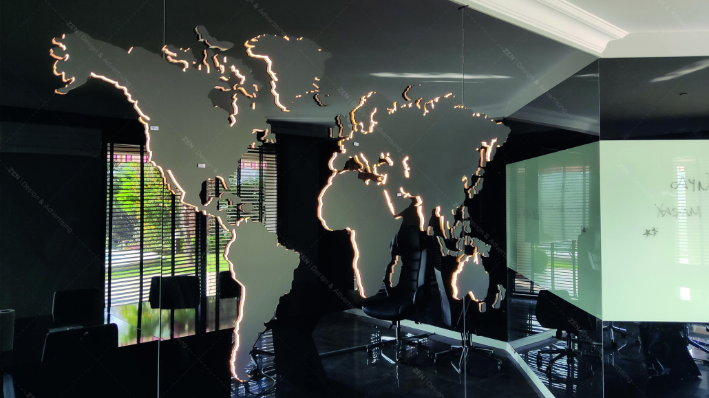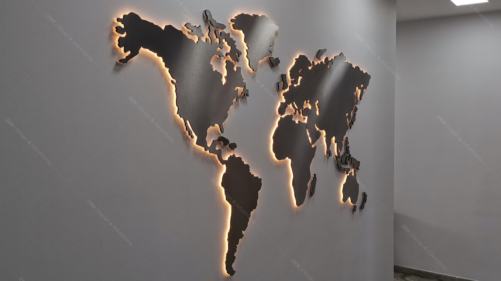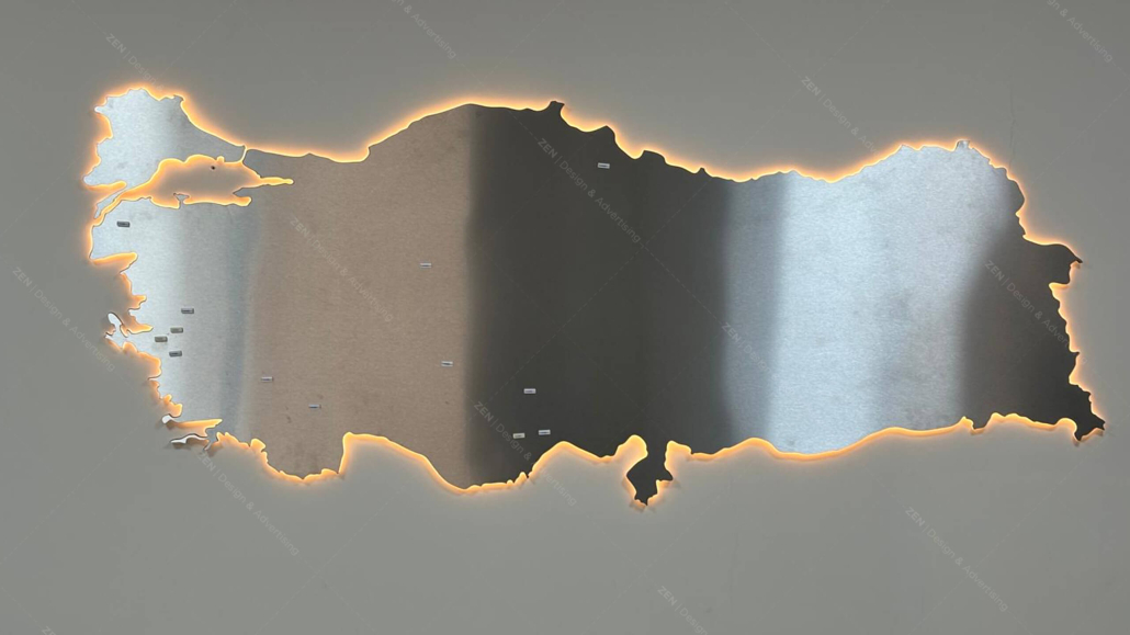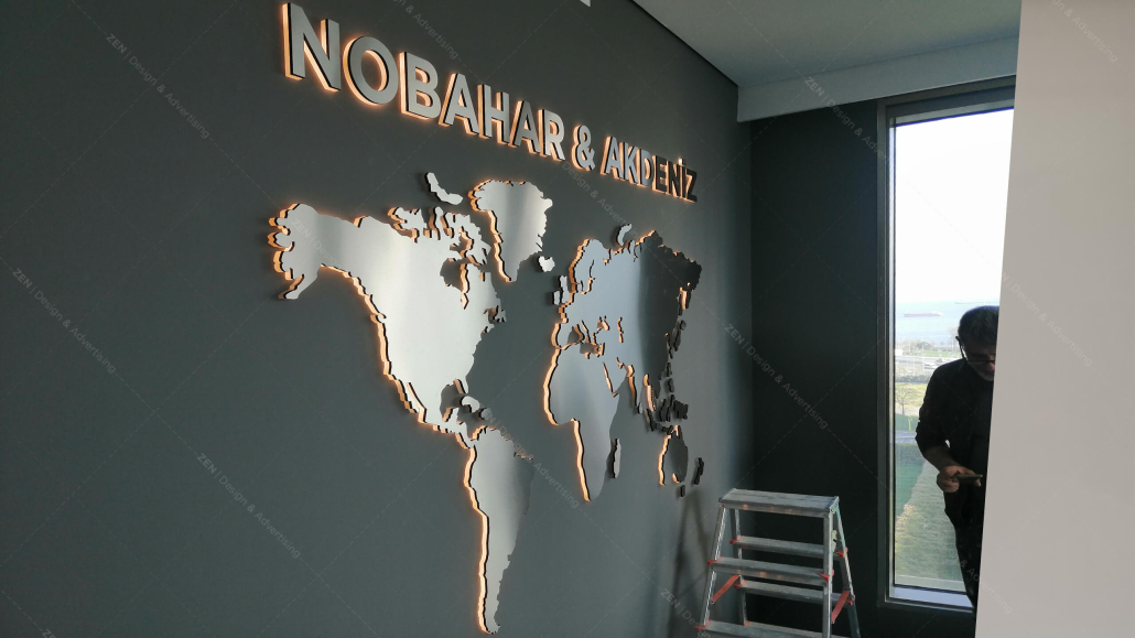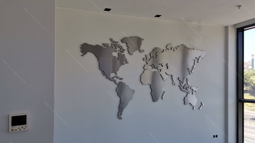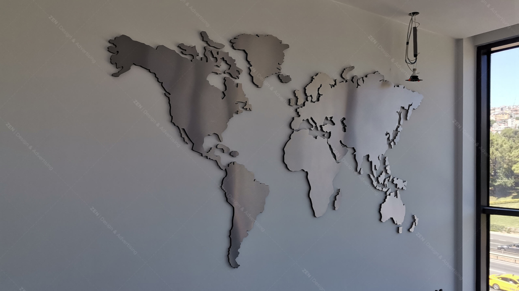 Bu şekilde üretilen harflere , Işıklı Dünya Haritası, Işıklı Türkiye Haritası, Işıksız Dünya Haritası, Dünya Haritası, ofis içi dünya haritası,da denmektedir. Ayrıca gemi ve yat sektörü için tuzlu suya uygun 316 paslanmaz çelik kullanılarak ışıklı veya ışıksız harita, harf veya logo imalatı yapmaktayız.