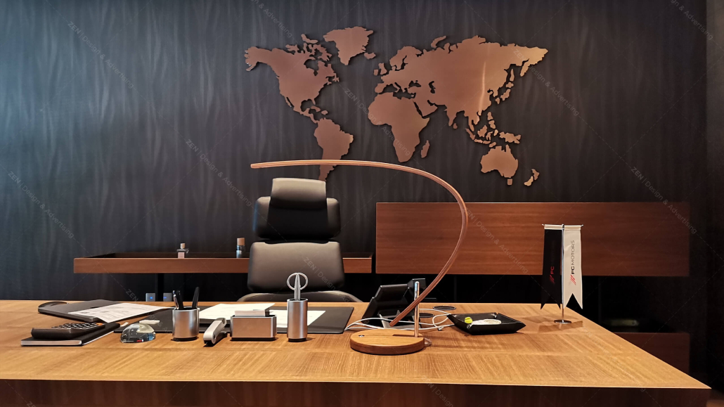 Günümüz şartlarına uygun modern ve en şık ışıklı veya ışıksız harita modelidir. Uzun ömürlü ve kullanıma göre dizayn edilmektedir. Işıklı dünya haritası yapımında kullanılan malzemeler; krom paslanmaz çelik, mat paslanmaz çelik, altın paslanmaz çelik veya aluminyum malzemelerdir. Bu malzemeler dayanıklı ve uzun ömürlüdür.