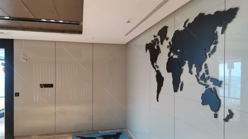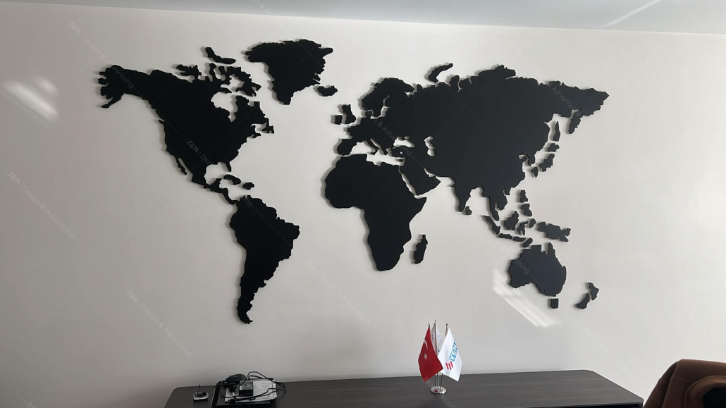 Uygulama aşaması; Montaja uygulama esnasında çıkabilecek sorunları tecrubemizle elde ettiğimiz çözüm yolları ve profosyonel ekibimizle sonuca en hızlı ve pratik şekilde ulaşacak şekilde başlarız. İmalatı yapılan haritalar duvar, ahşap, kompozit, şık bir tasarıma sahip paslanmaz veya boyalı demir ızgara üzerine ileride olabilecek değişiklik, taşınma ve tamirat unsurlarıda göz önünde bulundurularak pratik montaj aparatları kullanılarak uygulacağı zenime montaj edilir. Böylece sorunsuz ve yüzdeyüz müşteri memnuniyeti odaklı bir projemizi daha tamamlamış oluruz.